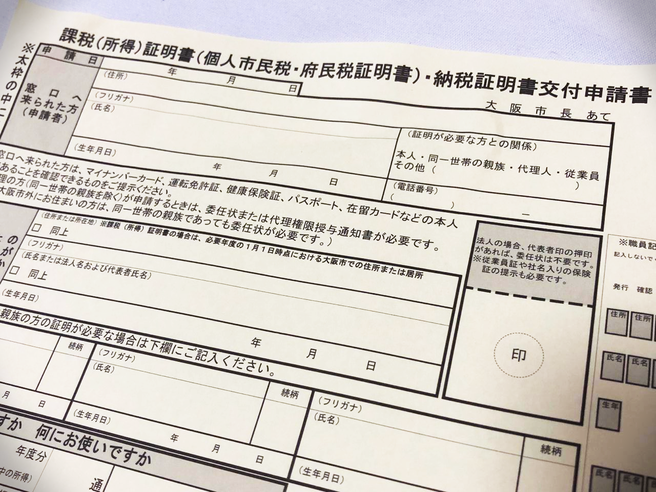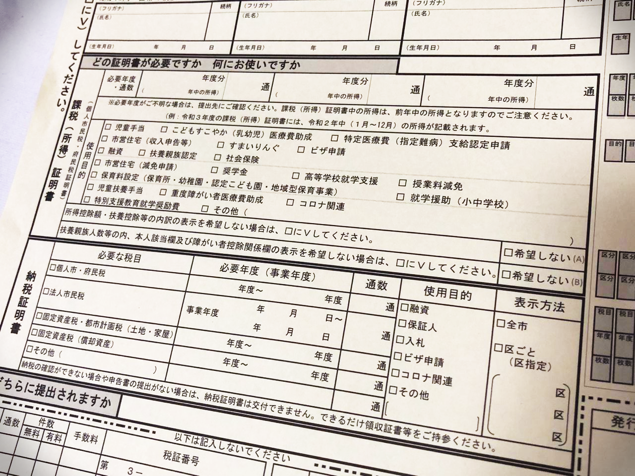 課税(所得)証明書(個人市民税・府民税証明書)・納税証明書交付申請書