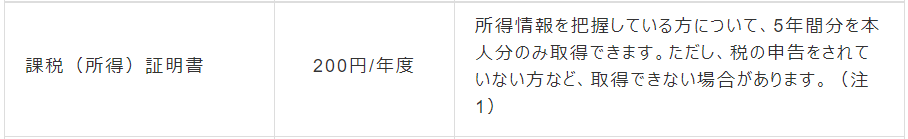 비자 갱신에 필요한 과세/소득 증명서는 연도 당 ¥200의 수수료만으로 발급이 가능하다.
