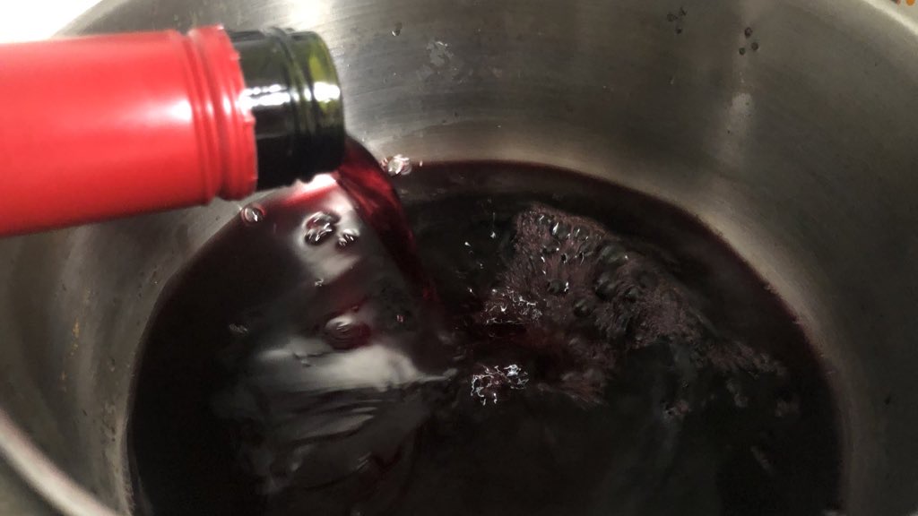1. 냄비에 와인을 붓고 중불로 익히기