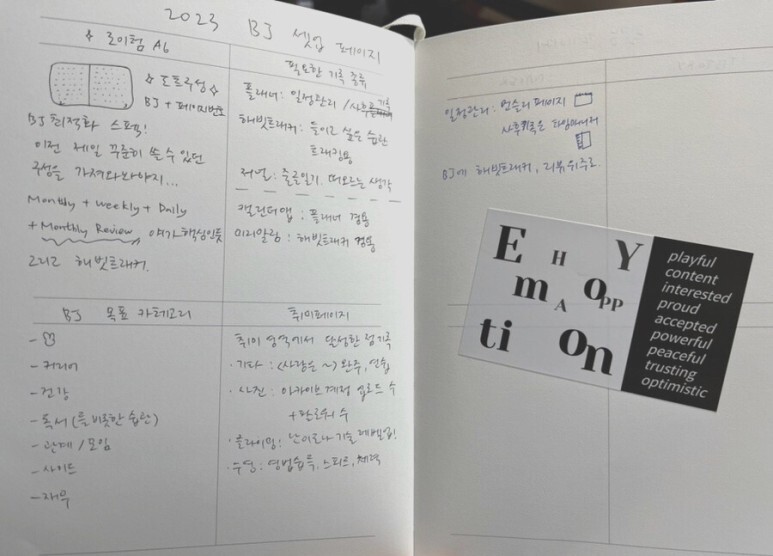 여기까지 참 길고 길었다. 그럼 이제 어떻게 불렛저널을 쓸 것인가! 목적에 맞춰 구성하되, 지속할 수 있는 정도를 파악하는 게 중요했다. 그래서 내 2023 불렛저널 컨셉은