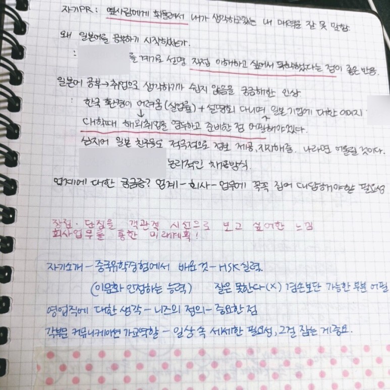 2015년에 불렛저널을 접하고도 당시 쓰던 플래너를 마저 쓰느라 당장 불렛저널을 시도해볼 엄두를 못 냈다. 그러다가 처음 불렛저널을 시도한 건 일본 취업을 준비하던 시기였다. 취업 설명회와 면접 일정 관리, 면접이나 스터디를 하며 피드백을 좀 더 효율적으로 기록하고 싶다는 마음에서였는데, 아직도 이 노트를 보면 그 때의 기억이 새록새록 샘솟는다.